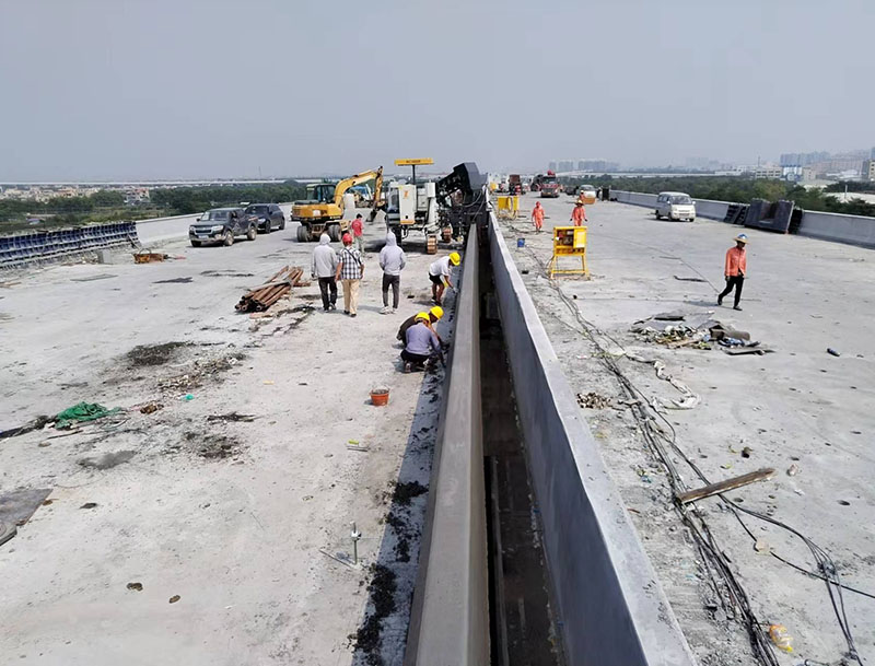 NC1800混凝土滑模攤鋪機在關(guān)東中山做的防撞護欄滑模施工