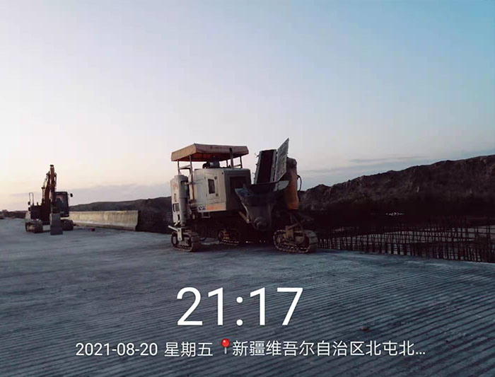 NC1300滑模攤鋪機在新疆北屯施工的防撞護欄滑模施工工程