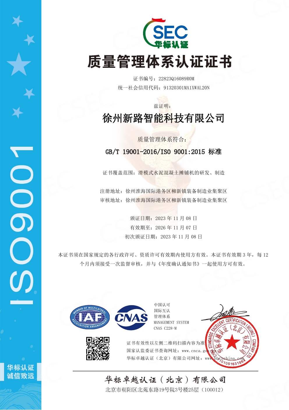 質(zhì)量管理體系認(rèn)證證書